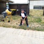 Après les travaux de terrassement réalisés par les services municipaux pendant le confinement, quelques bras musclés de la Compagnie se sont retrouvés aujourd’hui pour bétonner des allées et permettre un accès plus confortable aux pas de tir.