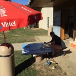 - une première couche de lasure a été mise sur le pan de mur du chalet et le bandeau sous gouttière